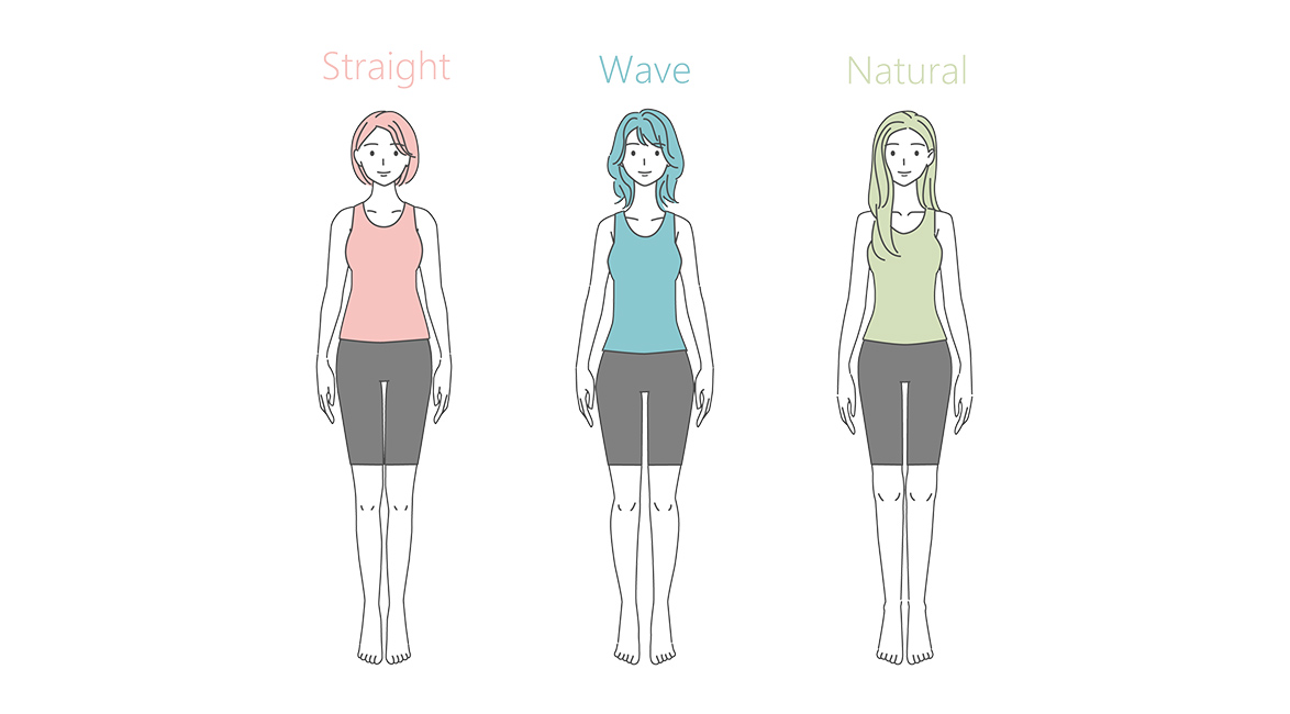 パーソナルカラーでは、似合う色は分かっても形や素材までは見極められませんでした。そこで、二神さんが考案したのが骨格タイプ診断です。身体の厚みを含む立体的なバランスのほか、肌の柔らかさやハリなどの質感は、似合う服の素材や形に影響します。これらに基づいて「ストレート」「ウェーブ」「ナチュラル」の3つの骨格タイプに分類されます。
