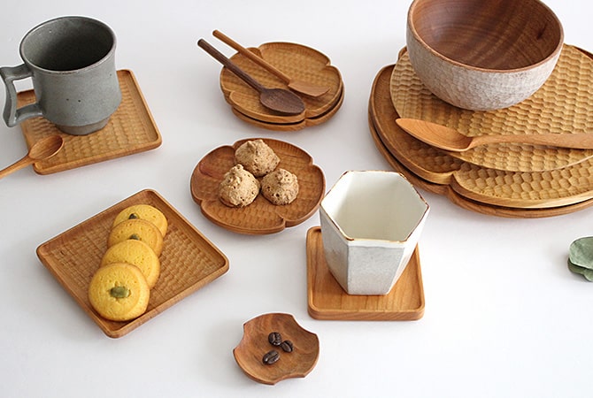木工は手触りの心地良さ、温かい雰囲気が魅力です。湿気を吸い込む性質があるため、木のお皿にパンを乗せると、カリッとしたおいしさが長続きします。