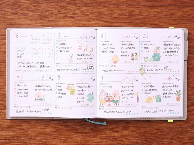 1月や4月はじまりの手帳が主流ではありますが、昨今では9月や10月、11月はじまりの手帳も発売されており、始めたいと思ったときに始められる状況があります。表紙のデザインや紙の種類も驚くほど多様化しています。好きな色やキャラクターを好みに合わせて選んだり、使用する文房具に相性の良い紙質のものを選んだりと、自分にぴったりの手帳を見つける楽しさを感じられるはずです。スペースが細かく区切られている紙面のものから、ページを埋めやすいようTO DO、天気、気分、映画や読書などの1行記録を記述できるよう項目分けされているものまで、まさに多種多様。ライブの日程や座席、グッズの購入履歴、CDの発売日などが記入しやすい「推し活手帳」まで登場しています。目的がはっきりしている人も、事前に用途を決めず使いながら手帳の使い方を見つけていきたい人も、適切なフォーマットを選べば気兼ねなく手帳のある生活をスタートできます。