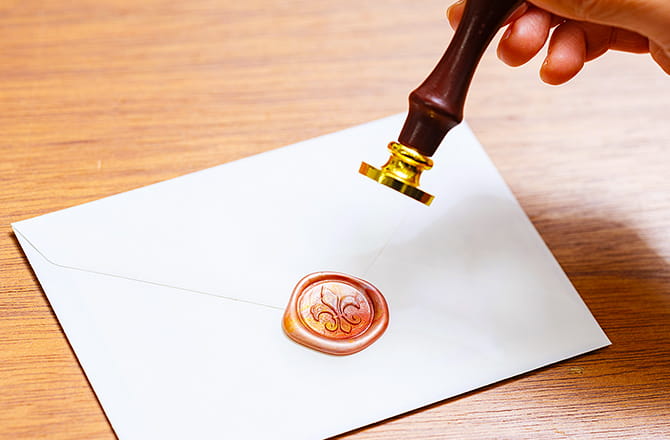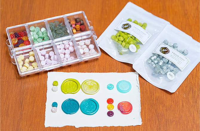一連の作業に慣れてきたら、ぜひワックスの調色も楽しんでください。組み合わせ次第でさまざまな色が作れます。複数色のワックスを爪楊枝でゆっくり混ぜて、マーブル調にするといったアレンジもおすすめです。単色のワックスだけでなく、複数色セットで売られているワックスもあります。ぜひお気に入りのカラーを見つけてください。シーリングスタンプは、手紙の封だけでなくグリーティングカードのデコレーションなどにも使えます。「自分オリジナル」のシーリングスタンプなら、送る側にも、受けとった側にも特別な喜びがあるはずです。