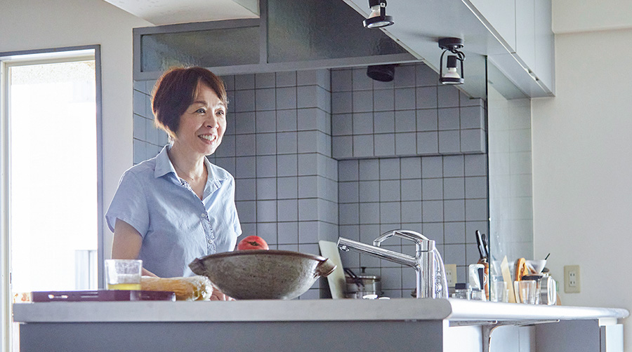 それでも脇さんの台所は母やお客さんなど、いつも人に囲まれていた。それは5人家族が食事をするカウンターキッチンでも、受講生が料理を学ぶスタジオでも、そして夫や友人と過ごす京都のアイランド型IHコンロでも変わらない。脇さんが腕をふるう台所はいつも温かな笑顔の集う場所なのだ。