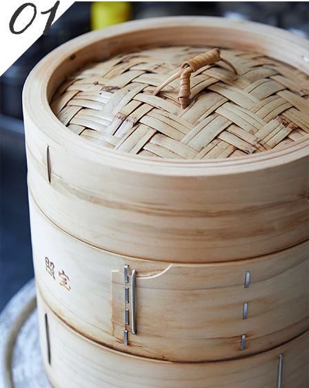 - 朝食は100gずつにわけて冷凍したごはんを中華せいろで蒸す。「蒸したごはん、おいしいですよね。このところ、蒸し料理がどんどん好きになっていて、夏だったらとうもろこしも蒸して食べますね。焼売も大好き」。