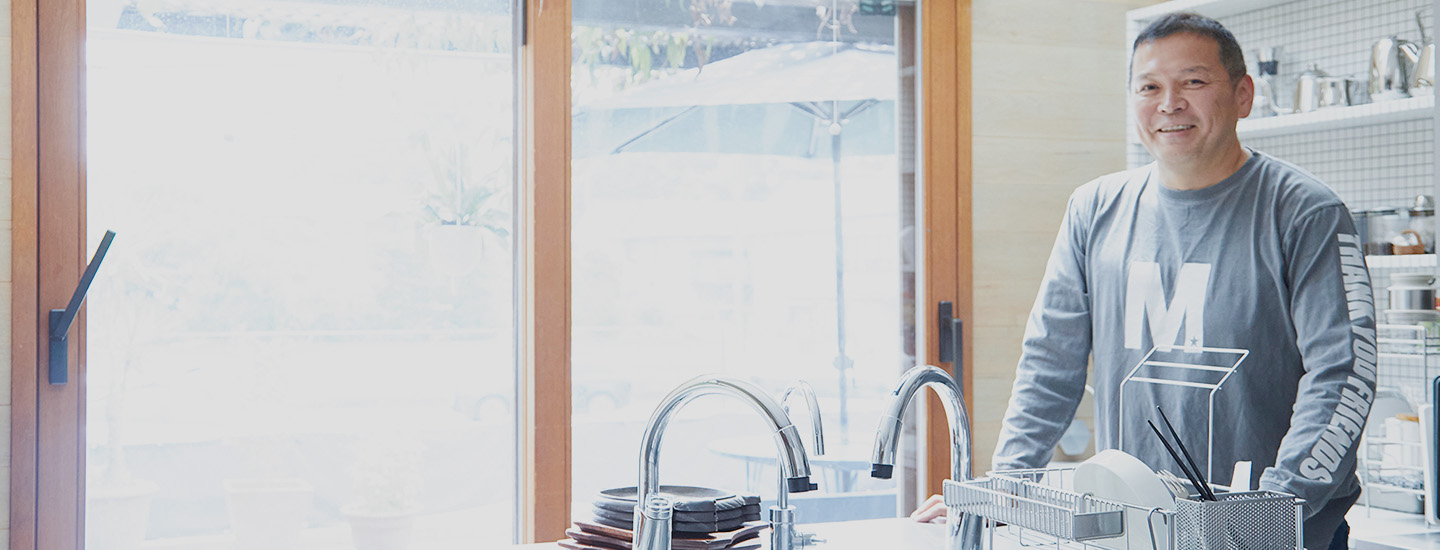 三菱電機統合デザイン研究所奥田勇- 掃除の行き届いたシンクや壁、整理された調理道具、そして台所から続く広々とした開放的なテラスまで、光山さん宅の台所は家族や仲間が自然と集まり、食の大切さと喜びを共有できる空間でした。お話を聞いている間も自然と笑みがこぼれてしまう、楽しいお人柄。それでいて折り目正しく人間関係をつむぎながら、「食の場を楽しむ」ことに真摯に向き合う姿勢にたくさんの学びがありました。飲食店経営者としても私人としても「お客様視点」を忘れない。それはデザインにおいても、本質でありながら時として見失ってしまう創造の源泉でもあります。大切なことを見失うことのないよう、まずは「自分が楽しむ」。光山さんとのお話を通して、デザイナーとしての姿勢を改めて見つめ直すことができました。