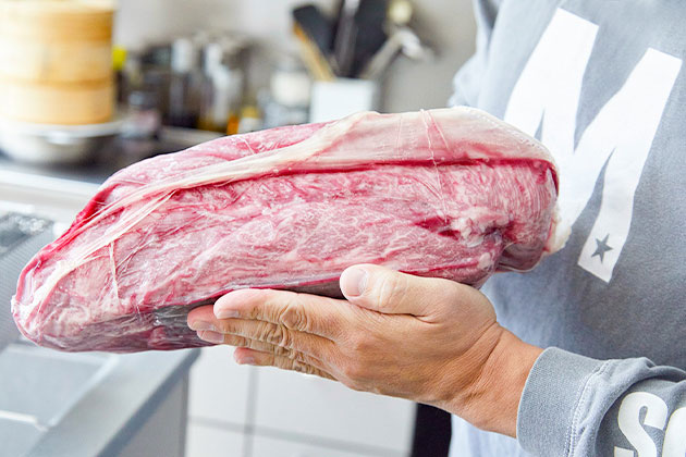 人を招くときは、外のテラスに七輪を持ち出しての焼肉が多い。大好きな「九条ネギとポン酢」をタレ代わりにひたすら肩ロースを焼いては頬張り、食べては炙る。キムチは生家近くの鶴橋のひいきにしている店でまとめ買い。肉は店で取引のある相手からあか牛の肩ロース肉を塊で送ってもらい、自分で切り分ける。