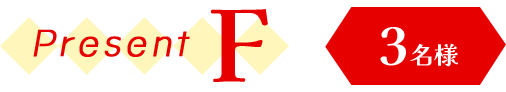 | 当選者発表 | 当選者の発表は、賞品の発送をもって代えさせていただきます。 メール、電話等による当落の照会にはお答えできませんので、ご了承ください。 ご当選者の権利は当選者ご本人にのみ有効で、換金・譲渡はできません。 |
