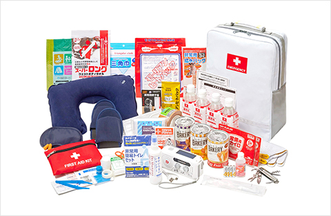 被災者の声を元に、防災士が厳選した30種類の防災グッズをセットにしました。火や水に強く、汚れにくい素材を使用したスタイリッシュな非常持出袋は、グッドデザイン賞を受賞しています。