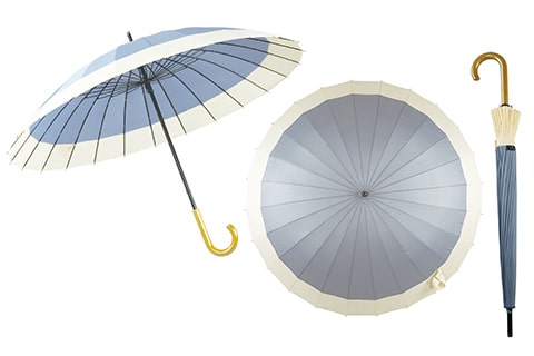 昔ながらの蛇の目傘を現代風にアレンジした、カジュアルに似合う和モダン配色の傘です。24本骨構造なので、丈夫でシルエットもおしゃれです。