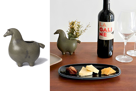 馬の形がとても愛らしく、置いておくだけでも絵になるフラワーベース。POTPURRIでは昔に作られて現在は使用していない原型を、セレクト、リメイクしながら新しい彩色を施して生産をする取り組みをしています。釉薬も窯によって表情の出やすい薬を使用して、1点1点仕上がりが異なる温かみのあるテイストになっています。