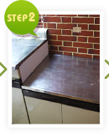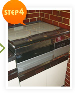 ![]() コンロ台にもビルトインIHが設置できるようにオプションの設置用枠を取り付けました。 |