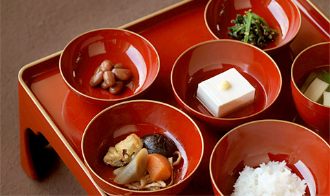 - ただし、客をもてなす場合など、もっとごちそうを並べる場合は、お膳の数を増やさなければなりません。そうすると二の膳がついて二汁五菜になります。これが昔のおもてなし料理の基本で、さらに三の膳がつくと、三汁八菜。