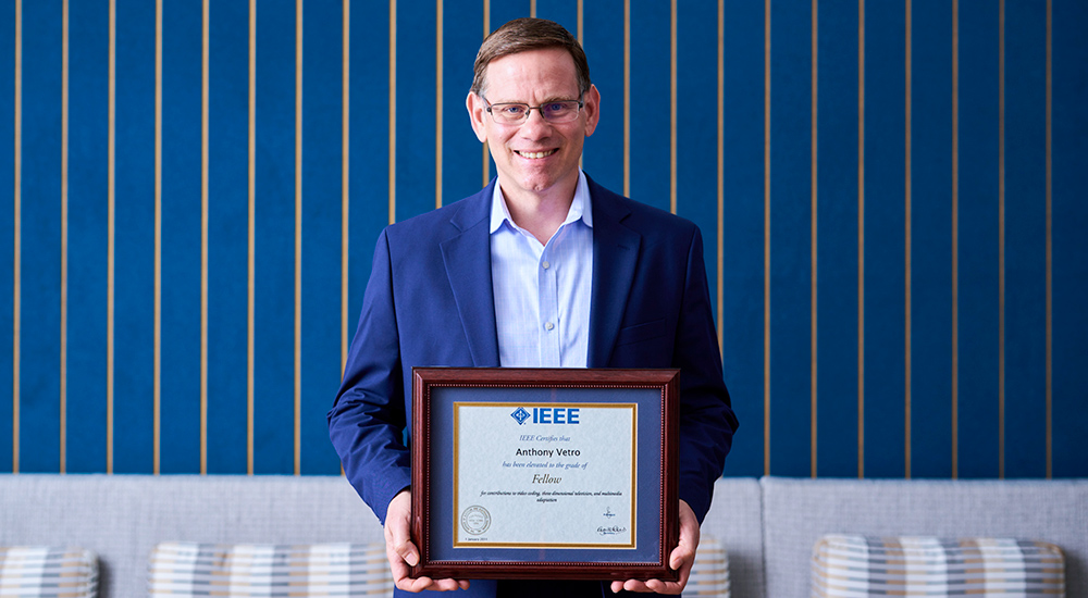 Anthony Vetro Ph.D.が2011年にIEEEフェロー昇格を認定された「ビデオコーディング技術」は、ビデオ放送、DVDやBlu-Rayディスクなどのパッケージメディア、ビデオ会議、インターネット/モバイルストリーミングで広く使用されています。圧縮されたビデオはインターネットトラフィックの大部分を占めており、これらの圧縮フォーマットを利用するデバイスは数十億台にのぼります。たとえば、デジタルテレビ受信機とディスプレイ、監視およびカメラ監視システム、自動車機器、衛星イメージングシステムなどの製品にも組み込まれています。