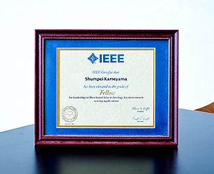 「IEEEフェロー」は電気・電子・情報通信工学分野で世界最大規模の学会「Institute of Electrical and Electronics Engineers」(IEEE)における最高位の会員資格です。この称号は、当該分野の研究開発と技術の普及に卓越した成果を挙げたことを証明するものであり、研究者にとって名誉あるものとされています。