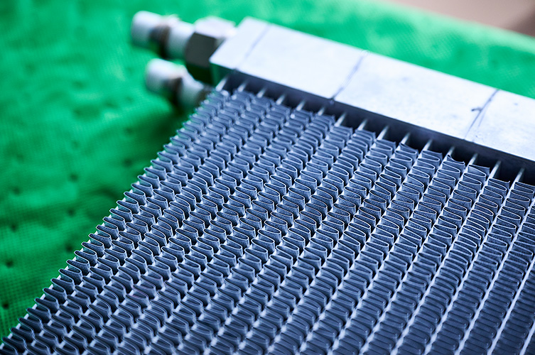 基本的構造にたどり着いたあとは、実際に製品に組み込み、量産するための設計のフェーズです。ここでも形状が量産に適しているか、幅広い使用条件や機種で同じような性能を出せるかといった課題が次々と生まれ、製作所などのメンバーと伴走しながら解決していきました。製品化を視野に従来の形を変えていくのは実に大変な作業でしたが、結果的に多くのハードルを乗り越え、HFT熱交換器と比べて伝熱性能の最大約40%向上を実現し、かつ冷媒量削減にも成功できたことは本当にうれしい限りです。