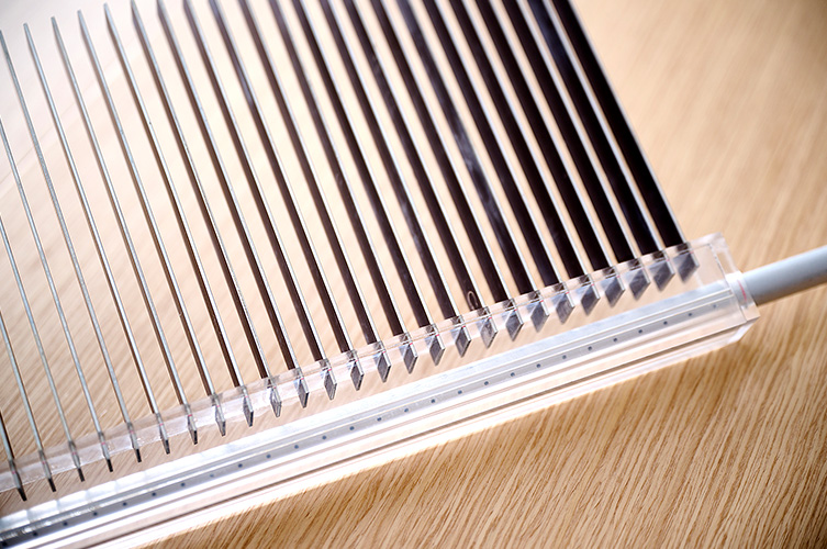 フィンの開発は、大量に生産され、低コストで高い熱交換性能を発揮する自動車用熱交換器のフィンを使えるのではという発想からスタートしました。自動車用熱交換器は基本的に冷房でしか使われません。対してヒートポンプ式空調機は暖房時、霜をとかす除霜運転を行うため、とけた水が排水されずに結露すると空調能力を低下させてしまいます。そこで、排水性の問題を解決する新構造の開発が私の主な役割となりました。