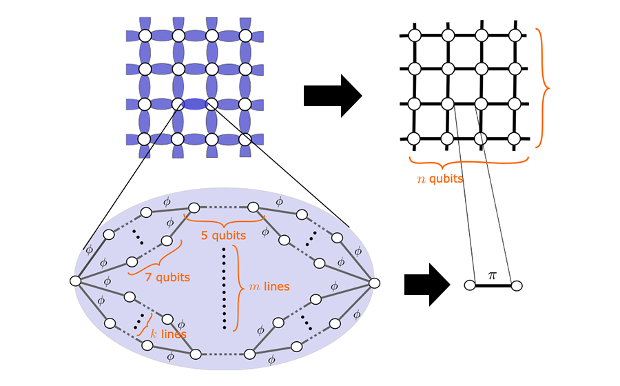 光量子コンピュータに特に適した量子計算方式である測定型量子計算において、計算能力に制限があるリソース状態の内の1量子ビットを置き換えるだけで計算能力を最大化する手法を提案しました(研究開発成果[37])。また、本変換を達成可能な1量子ビット状態は一意であり、他の1量子ビット状態を用いた場合は実行可能な量子ゲートが増加しないということも明らかにしています(研究開発成果[38])。