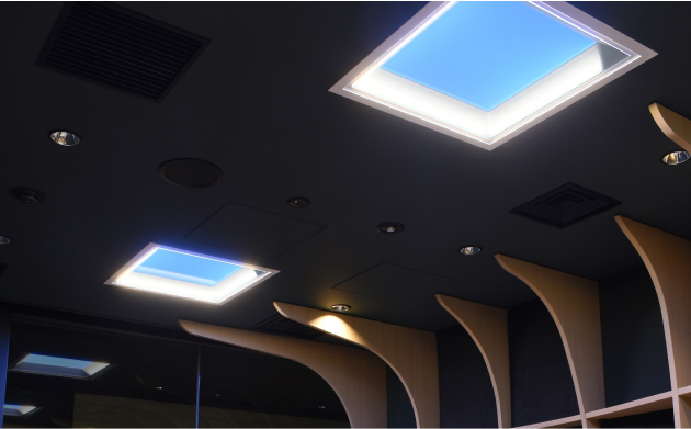 奥行き感のある青空と光の差し込みを表現することで、快適性の向上・開放的な雰囲気を実現します。オフィスや窓の無い屋内エリア等、あらゆる場所で空間の広がりや自然とのつながりを演出し、気分がリフレッシュ・リラックスしやすい環境作りに貢献します。