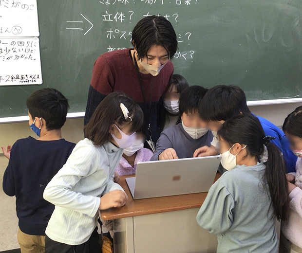 今回の取り組みのきっかけは、大船小学校の子どもたちが統合デザイン研究所へ社会科見学に来たことです。その際、先生方から「総合的な学習の時間の中でポスターの描き方について子どもたちに教えてほしい」という依頼を受けました。先生方のお話をよく聞くと、「子どもたちに創造する力を身に付けさせたい」という思いがありました。また、これまでの授業では、実際の現場にある問題の本質が見えないまま取り組むことが多く、一般的な啓蒙ポスターを製作するのみで、子どもたちの創造力が膨らみにくいことが課題でした。ポスターは一度作って終わりではなく、効果をしっかりと振り返ったり、捨てる人の気持ちを想像することが大切なのではないか。それには、私たちが普段の業務で大事にしているデザイン思考を活用できるのではないかと考え、計3回の授業を行いました。