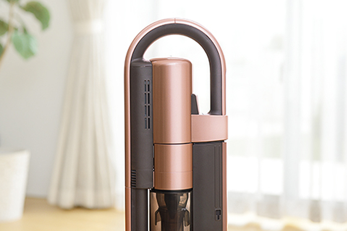 山岸さん:キャニスタータイプは集塵部やモーターや電源コードが掃除機本体に収納されていますが、床面を移動するので手に重さの負荷があまりかかりません。一方、コードレススティックは手元にモーターと電池があるので、重さが直にかかってしまいます。ですから、より軽量化しないといけないという課題があります。また、ZUBAQは「リビングに出しておけてさっと使える」をコンセプトにしているので、あえてクリーナーっぽく見せないというところを意識して、デザイナーとデザインを考えました。