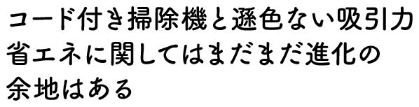 クリーナーは昔からある家電ですよね。紙パック式からサイクロン式へとか、そういう進化はありましたが、消費電力はそう変わっていないと思います。逆に、昔は500Wくらいが主流でしたが、最近は吸引力の向上に伴って800Wとか1000Wとか、むしろ増えています。今後は吸引力を保ったまま省エネを実現する技術も出てくるのでしょうか?