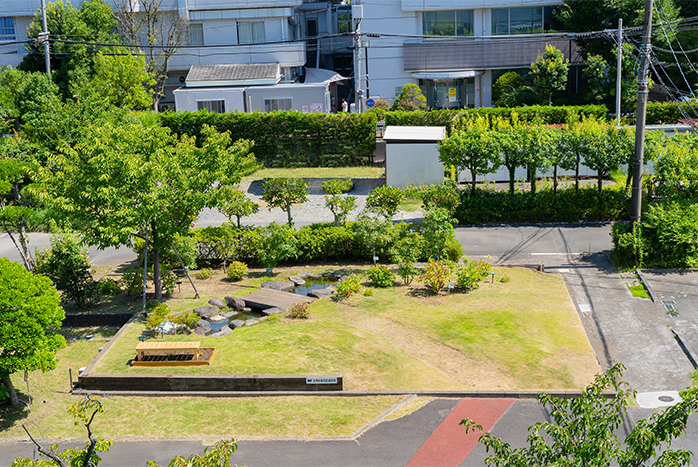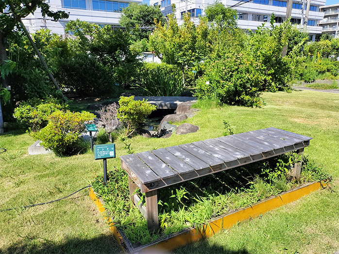 これらの調査結果をもとに、地元・鎌倉市の豊かな自然と調和する緑地づくりを進めてきました。2017年には、正門近くの敷地に水辺を含む緑地を造成。地域在来の植物を植栽するほか、在来メダカの飼育をはじめました。この緑地は、従業員の憩いの場や教育のツールとしても活用しています。また、外来種の駆除・防除にも継続的に取り組んでいます。