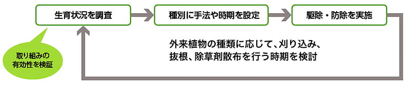 外来種の駆除などを実施。在来種の導入や情報発信も
