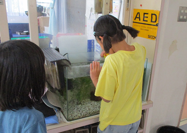 児童によるメダカ飼育の様子
