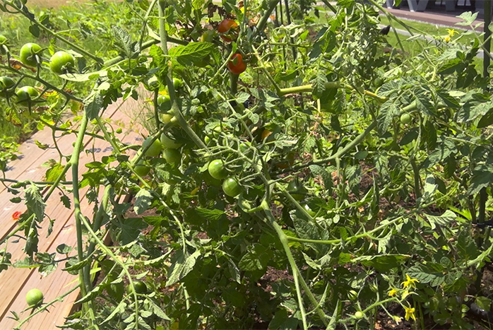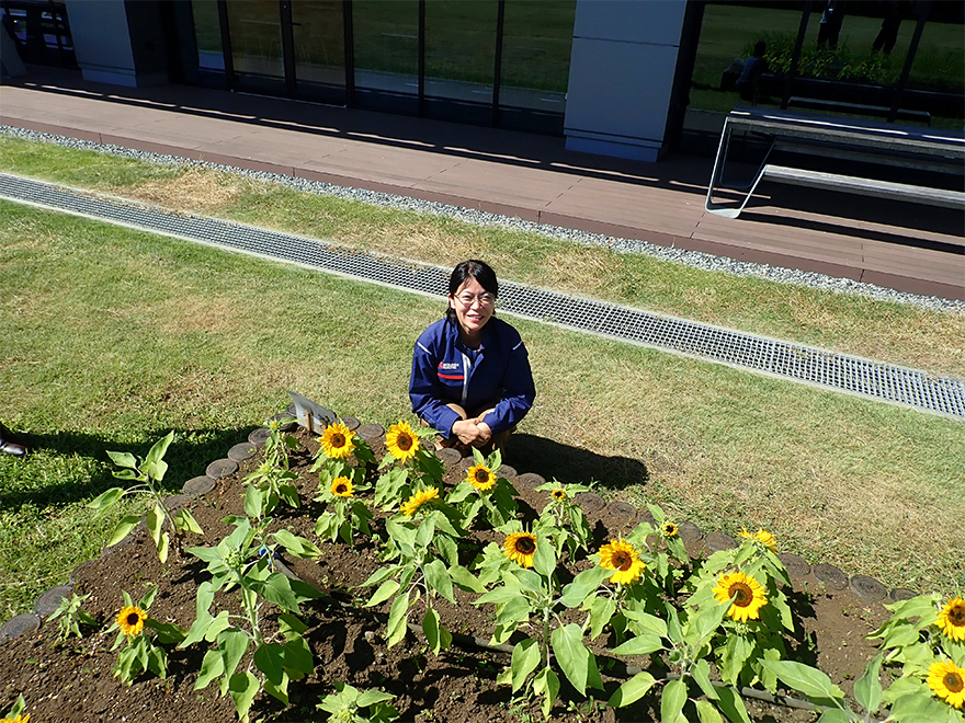 従業員が自然と触れ合う機会を増やすことを目的として、地区内の芝地に園芸スペースを設置しています。希望する従業員が自由に好きな植物(野菜)を育てられる場としており、多くの従業員の憩いの場となっています。