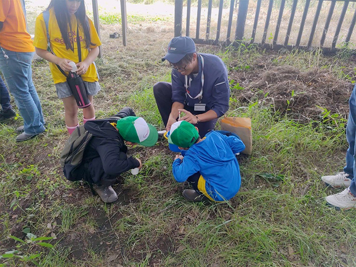 当日は、冒頭でまず畑の生きものについて説明したほか、着ぐるみを着て特徴的な生態を実演するなど、子どもたちが理解しやすいよう内容を改善しました。さらに、収穫したサツマイモから特に大きなものを探してもらうなどエンターテインメントの要素も取り入れ、より楽しく学べるプログラムとしました。子どもたちはバッタやイモムシ、カナヘビなど様々な生きものを捕まえてアプリで種類を確かめ、従業員の説明に耳を傾けていました。今後も、この活動を継続しながら、地域の環境保全と生物多様性の理解を深める取り組みをさらに充実させていきます。