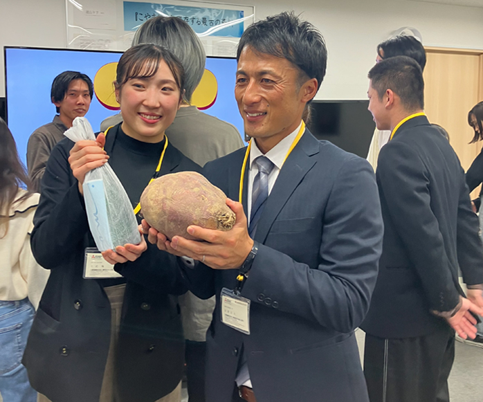 群馬地区の担当者が持参したサツマイモは重量が2,800グラムあり、2,500グラムで、初参加、初優勝した前年に続いて「畑部門」での2連覇を飾ることができました。これを含めた各団体の収穫物の一部は、「芋人」プロジェクトの一環として、オリジナルの芋焼酎に加工、販売されます。