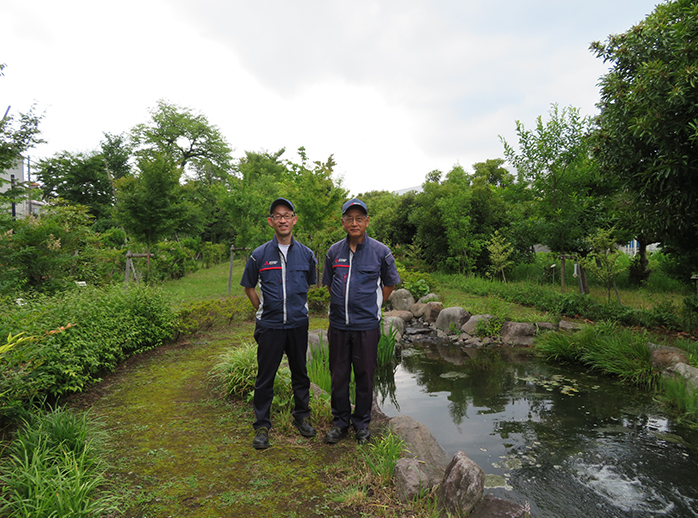 小さな緑地は地域の環境を改善するには非力ですが、ここで起こっていることが地域でも起こっているという視点で管理し、観察することで、色々な気づきを得ることができます。この気づきを従業員と共有していくことにより、生物多様性や自然環境に関する興味が芽生え、個々の行動の変化につながることを期待しています。