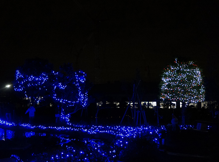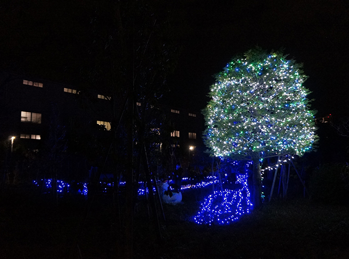 「生物多様性緑地」については、エリアの点在を避け、一定の面積を確保。より多くの生きものが利用しやすい環境にするとともに、管理のコストや手間を減らし、長期的に維持していけるよう工夫しています。さらに、在来の環境を意識したビオトープを造成することで、鳥や昆虫が休息などに利用できるようにしています。2020年8月のビオトープ完成以降、トンボの飛来などが多数確認され、その後繁殖も確認できるようになりました。現在は緑地管理を継続しながら、従業員の教育の場、憩いの場としても活用できるよう、事業所内での情報発信にも努めています。毎年12月には、生物多様性緑地の木々をイルミネーションして、クリスマスイベントを実施するなど、従業員が気軽に緑地に親しめる機会の創出にも取り組んでいます。