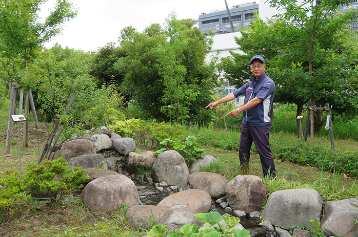 「生物多様性緑地」内のビオトープは他の水源からは閉鎖されているため、ある程度は人の手で水位や水質を調整し、一定の環境を保つ必要があります。