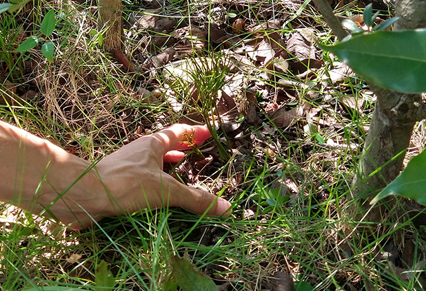 発見された場所の環境がマツバランの生育に適していると考えられたことから、これまで人の手を加えず見守ってきました。しかし、2023年10月に緑地近隣で工事が実施されることとなったため、これに先立って、比較的環境条件が近いと思われる場所へ植え替えました。
