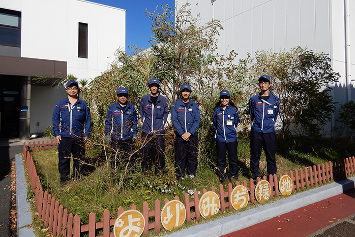 当社グループでは、事業所の生物多様性保全の活動により、次世代に引継ぐ地域の環境及び人づくりの推進を目指しています。そこで当製作所は、構内にとどまらず周辺地域の環境に貢献することを意識し、周辺の山々の緑を飛び石的につなぐ機能緑地として“よりみち緑地”を整備してきました。