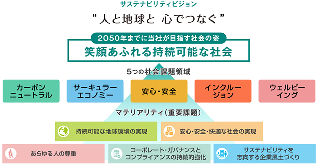 これからも、企業としての社会的責任を果たすべく、環境・社会・経済の調和を図りながら、サステナビリティ経営の理念を深く根付かせ、イノベーティブカンパニーへの変革に努めてまいります。