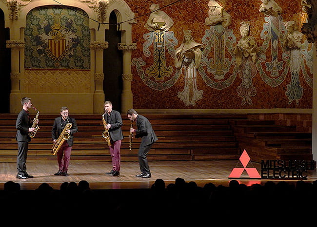 Mitsubishi Electric Europe, B.V. スペイン支店は、スペイン・バルセロナの世界遺産「カタルーニャ音楽堂」で毎年行われる、若手音楽家の登竜門「カタルーニャ音楽祭」のスポンサーとして、将来有望な若手音楽家を2000年から支援しています。