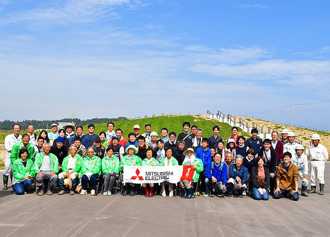 ドングリの苗木が立派な海岸防災林に成長するためには、30年の歳月がかかるため、東北地区の事業所※が、福島県相双建設事務所や地元の方々と一緒になって、東日本大震災復興支援を兼ねた里山保全活動を定期的に実施しています。