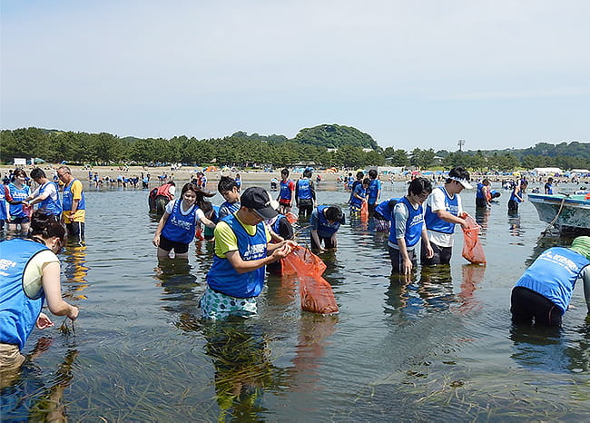 神奈川県内の5事業所※は、海水浄化作用のある海草「アマモ」の藻場を再生し、海の浄化と生態系の保全を目指す「アマモ再生活動」に2013年から取り組んでいます。