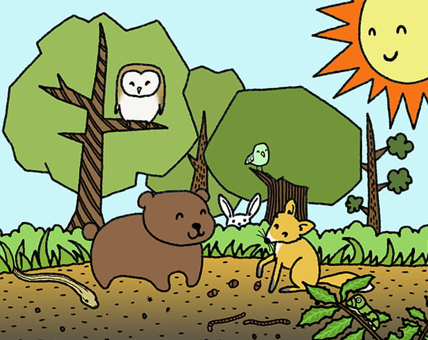 あふれる陽の光で木はすくすくと育ち、森ができ、たくさんの生きものが集います。