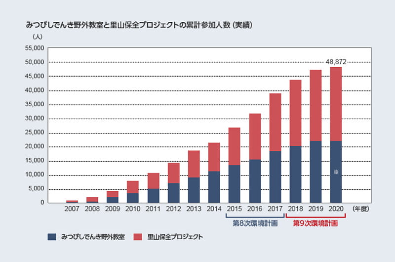 環境マインドの礎は「五感をフルに使った自然体験」によって深く、太く養われます。野外教室は、自然体験を通じて、社員も、その家族も、地域の皆様も一緒になってエコロジー(生きもの同士のかかわり)を共に発見するための取組みです。自然保護は三菱電機グループだけでできるものではないからこそ、様々な人々と環境マインドを共有することが大切です。2006年10月にスタートした野外教室は、社会・環境貢献、地域コミュニケーションの場としての役割も果たしています。