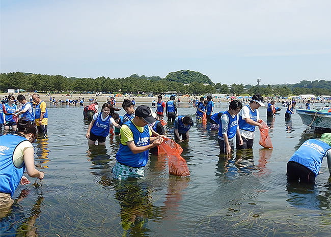 神奈川県内の5事業所※は、海水浄化作用のある海草「アマモ」の藻場を再生し、海の浄化と生態系の保全を目指す「アマモ再生活動」に2013年から取り組んでいます。
