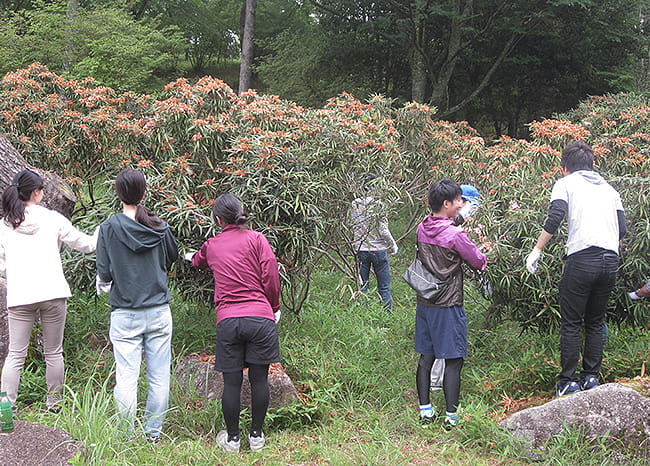 中津川製作所では、岐阜県立公園「根の上高原・つつじ園」で里山保全活動と子どもたち向けの環境塾である「森のめぐみ塾」を行っています。