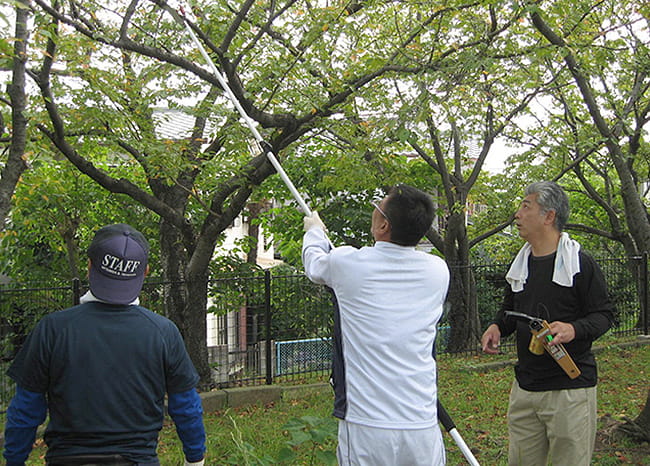 1986年に設立した「瑞ヶ池公園の桜を育てる会」は、伊丹市の桜を守り育てるため、近隣住民の方々とともに高周波光デバイス製作所の従業員が始めた活動です。その功績が認められ、2009年には財団法人日本さくらの会より、日本最高峰の「さくら功労者」として表彰され、2011年には伊丹市より、他の模範となる善行をたたえる善行賞「つつじ賞」を受賞しました。そして、日米友好の桜を米国へ寄贈して100周年を迎えた2012年には、「みどりの愛護」功労者国土交通大臣表彰を受賞しています。