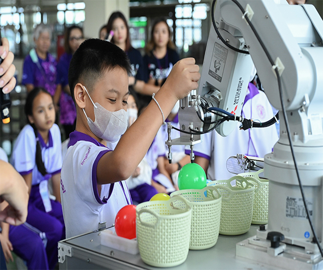 タイでは、小学生を対象とした科学教室を三菱電機グループ各社にて持ち回りで実施しており、科学実験体験や当社事業に関わる技術に触れることを通じて、科学の楽しさを体感する機会を作り、児童の教育支援、地域社会への貢献を果たしています。