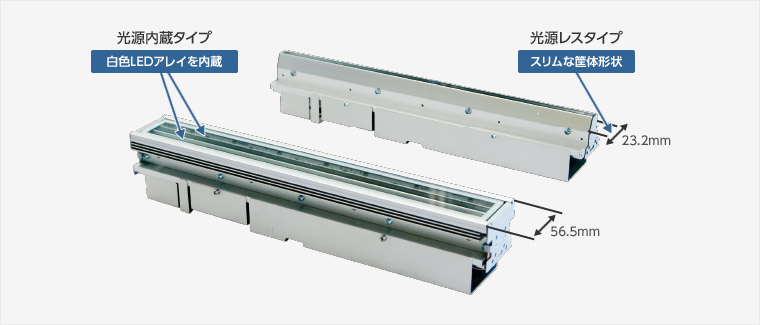 ご使用方法に合わせ、光源内蔵タイプと光源レスタイプの二種類を選択いただけます。