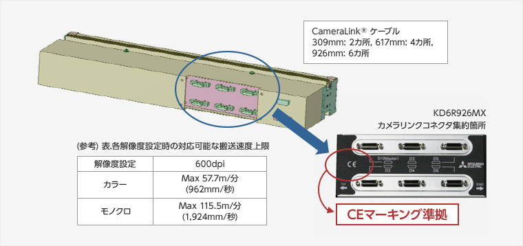 CEマーキング準拠、カメラリンクコネクタを一カ所に集中配置、搬送可能速度はカラーの倍速!!