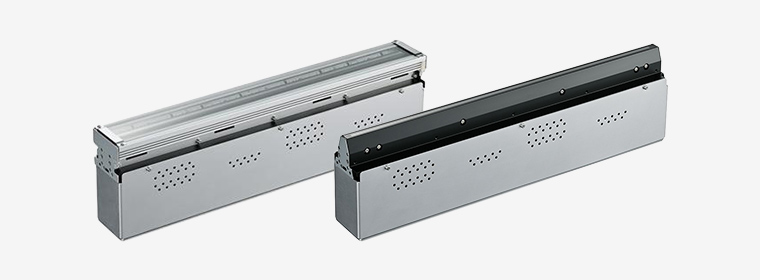 光源レスタイプは、スリムな形状となっています。お客様がご用意される光源と組合せ、角度を調整しながら、フレキシブルに設置いただけます。