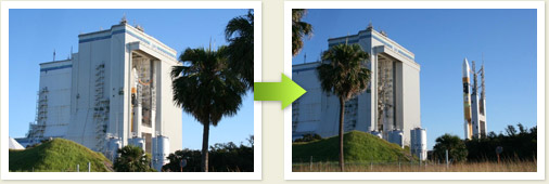 - 大型ロケット組み立て棟から約250mの距離から、機体移動を取材