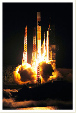- 20時17分、定刻通り打ち上げられたH-IIAロケット。夜の打ち上げはドラマチックだ。(提供:JAXA)
