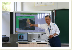 ところが、この質問に茎南小の子たちはぽか〜んとしている。ここ数年成功が続きロケット打ち上げ失敗を見たことがないのだ!そこで授業を見ていたお父さんの登場だ。石堂夏葵ちゃんのお父さん、裕司さんは約20年前の日本宇宙少年団(YAC)団員。今は南種子町役場に勤めながら、YAC南種子町宇宙科学分団の事務局長を務めている。「ロケットが失敗するととても残念だし、ロケットを作る人や打ち上げる人、約700人が町に来なくなって、とても静かになってしまいます」と話すと地元っ子も不思議そうに聞いている。